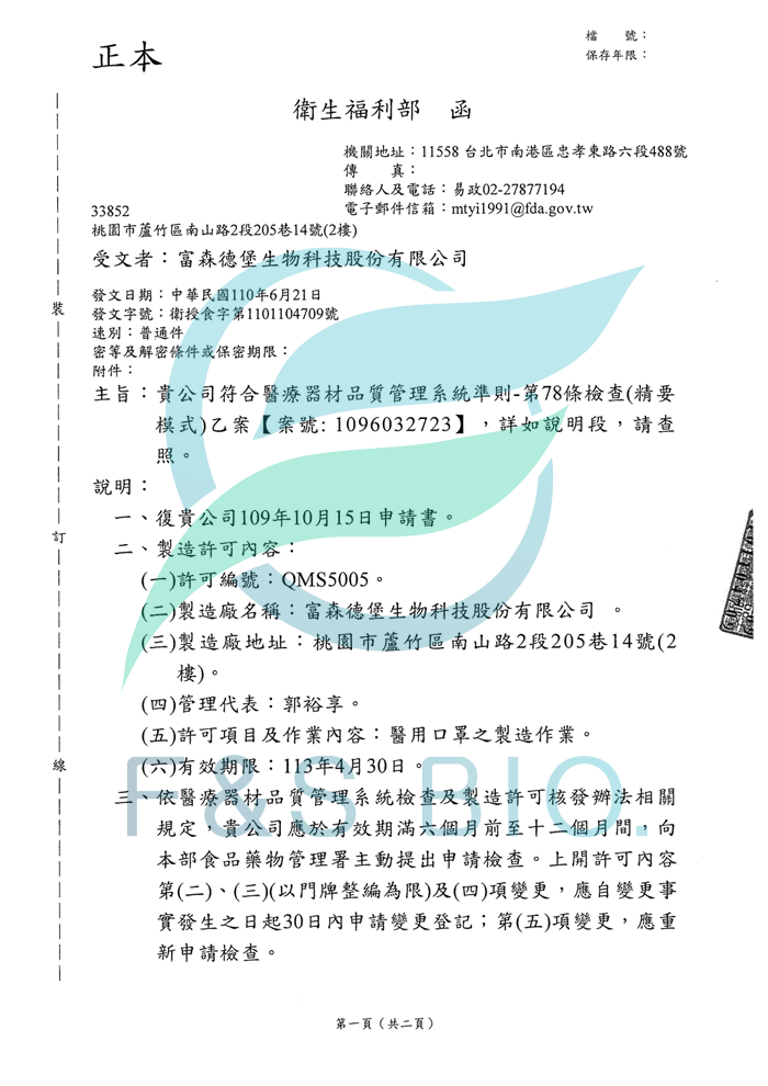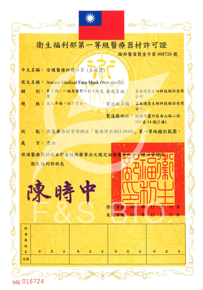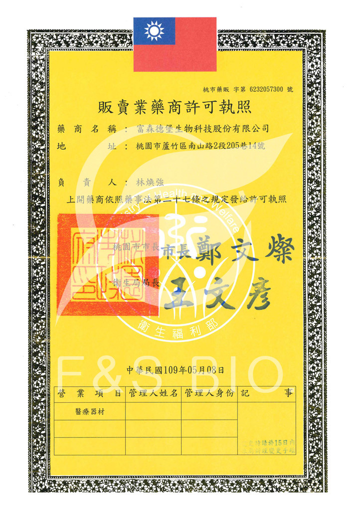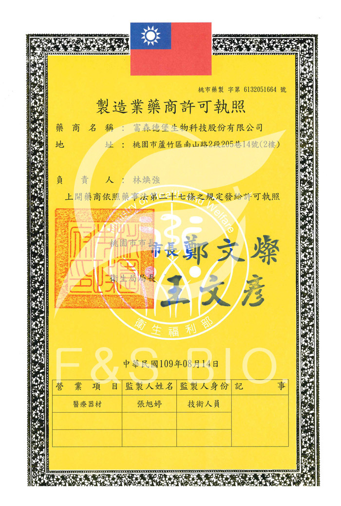 F&S Biotech upholds the highest quality standards and has obtained numerous significant international and domestic certifications, including ISO 9001, ISO 9001 UKAS, ISO 14001, ISO 13485:2016, U.S. FDA 510K, CE, and CNS. These certifications demonstrate our excellence in quality management, environmental management, and product safety. They not only reflect our unwavering commitment to quality but also serve as a vital assurance of trust in the global market, enabling customers to confidently choose our products and services.